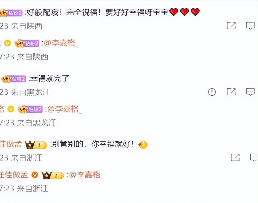 今天下午,李嘉格还在在微博上感叹:“新生活,刚好合拍!”看来她对这个新男友非常满意。网友们也对她送上了诚挚的祝福。